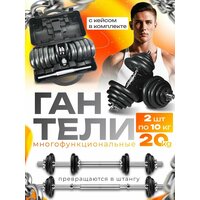 Обновленная серия, улучшено качество гантельного набора штанга разборная! Гантели для силовых тренировок, для занятий спортом, кроссфитом, тяжелой атлетикой, для тренировок дома, незаменимый аксессуар при занятиях фитнесом и аэробикой. Специализация бренда: аэробика, тяжелая атлетика, кроссфит, пауэрлифтинг, бодибилдинг, силовые тренировки, бег, ходьба, йога. Оригинал, товар сертифицирован. В наше время спорт очень популярен и активный образ жизни. Гантели виниловые, пластиковые, обрезиненные, неопреновые, разборные, сборные, детские, женские, мужские; гири чугунные и обрезиненные в различных весах и цветовых решениях – все эти необходимые аксессуары для тела мечты и поддержания физической формы представлены в одном месте. Гантели разборные 20кг плюс гриф для штанги металлические в кейсе. Гантели для фитнеса 2 штуки по 10 кг. Диски и гантельные грифы, а также гриф для штанги, изготовлены из металла, покрытые металлической крошкой что позволяет защитить покрытие от коррозии и ржавчины. Гантельный набор поставляется с грифом для штанги, что существенно расширяет варианты тренировок. Благодаря блинам различного веса, спортивный набор позволяет вам сделать гантели разных весовых категорий. Спортивный инвентарь поставляется в кейсе, что позволяет переносить его например из тренажерного зала для занятий спортом дома. Спорт товары подойдут как для мужчин для тяжелой атлетики, так и для женщин для фитнеса. Реабилитация в спорт, начинай свой спортивный день правильно. Гантели разборные удобно использовать, как тренажеры и фитнес дома. Фитнес и спорт в домашних условиях эти гантели позволят это осуществить. Известные спортсмены выбирают данный набор ввиду своего вида и функционала. Это прекрасный подарок. Гантели + штанга спортивная универсальный вариант для домашних тренировок. Известные спортсмены выбирают данный набор ввиду своего вида и функционала.