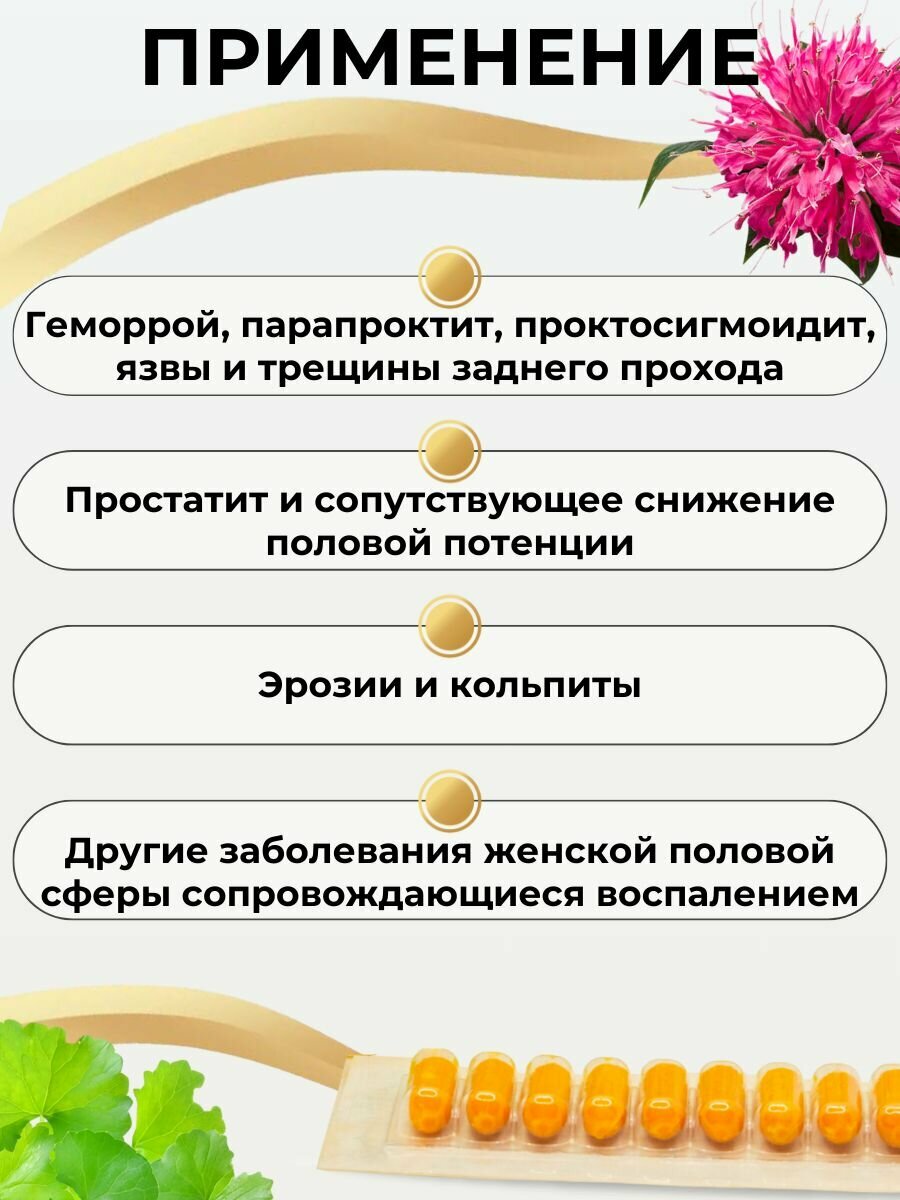 Показания к применению и фармакологические свойства отдельных компонентов: прополис оригинальная технология приготовления обеспечивает активное всасывание следствием чего является не только поверхностное, но и внутритканевое многоплановое действие: антимикробное, противогрибковое, местное обезболивающее, противовоспалительное, ранозаживляющее, адаптогенное и противозудное. Уничтожает микробов, устраняет различные признаки и симптомы воспаления, такие как: краснота, отечность, боль и др. Повышает потенцию. Кольпиты, бели, эрозия, метрит, эндометрит, параметрит, аднексит, геморрой, трещины, язвы, простатиты. Масло облепихи Язва желудка. Язва двенадцатиперстной кишки. Воспалительные болезни шейки матки. Воспалительные болезни влагалища и вульвы. Эрозия и эктропион шейки матки регенерирующее-стимулирует репаративние процессы(ускоряет эпителизацию) при поражения слизистой оболочки прямой кишки и влагалища различной этимологии. Способствует заживление трудно заживающих ран, наружных и внутренних язв, ожогов выводит из организма сопи тяжелых металлов; повышает эластичность кровеносных сосудов, обладает антисклеротическим действием; улучшает работу сердечно-сосудистой системы; нормализует жировой белковый и холестериновый обмены; положительно влияет на функцию щитовидной железы; нормализует работу печени, повышает потенцию. Гинзенг адаптогенное, тонизирующее при умственном и физическом переутомлении, стимулирует секрецию желёз, воздействует на нижние отделы спинного мозга. Повышает потенцию. Слабость гениталиев, Сладострастное щекотание в конце уретры, Половое возбуждение без возможности его реализации. Ощущение давления в яичках. Тугоподвижность спины, контрактуры суставов, хруст в суставах. Экстракт (концентрат) из грязи озера Тамбукан противовоспалительное(оказывает влияние на обе фазы воспалительного процесса), ранозаживляющее, регенерирующее, иммунокорректирующее, мощное антимикробное действие. Геморрой, воспалительные заболевания мочеполовой системы, повреждения слизистых оболочек, трудно заживающие раны, язвы, трещины.
