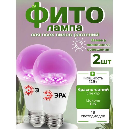 Фитолампа для растений 2 шт светодиодная красно-синего спектра 12 Вт Е27 фито лампа FITO-12W-RB-E27 K ЭРА: сравнение цен, характеристики, фото, актуальное наличие и цены.