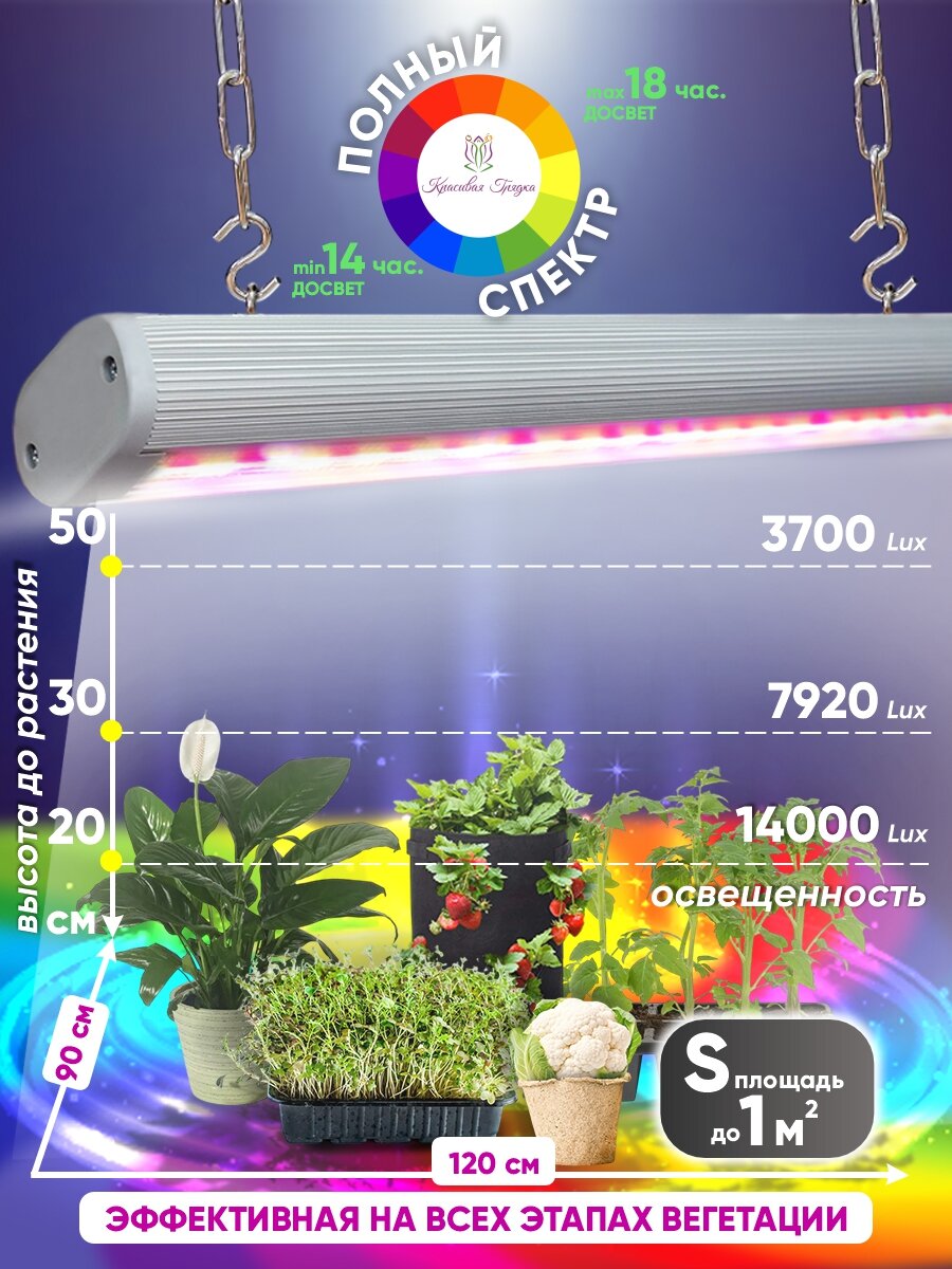 Фитолампа для растений и рассады «Комфорт», полного спектра, «Красивая грядка», длина 100 см: сравнение цен, характеристики, фото, актуальное наличие и цены.