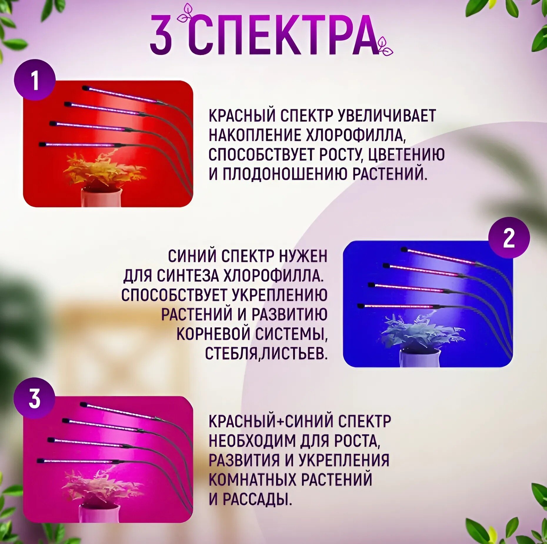 В нем нуждаются молодые растения, этот спектр требуется для активного роста и развития побегов