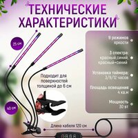 Необходим для стимуляции роста, при цветении растений. Это наиболее сбалансированный способ освещения. Такой свет максимально приближен к солнечному, но остается безопасным для людей. Фитолампа для растений и рассады позволяет регулировать освещение на 9 уровнях яркости каждого цвета; Предусмотрен таймер, который поможет добиться эффективных результатов. Вы можете установить его на время работы: 3, 9, 12 часов; Каждая лампа рассчитана на 3-5 небольших растений; Устройство запоминает настройки и работает автоматически; Регулируемые подвижные ножки позволяют направлять потоки света в нужные стороны; Фитолампу на прищепке удобно крепить или переносить. Рабочая температура светодиодов: от -20 до 50 градусов Цельсия. В комплекте к фитолампа для растений полного спектра идет USB-провод без адаптера питания. Провод оснащен пультом управления с 4 кнопками (пуск, таймер, яркость, свет). Внимание: Не допускается попадание воды на фитолампу!