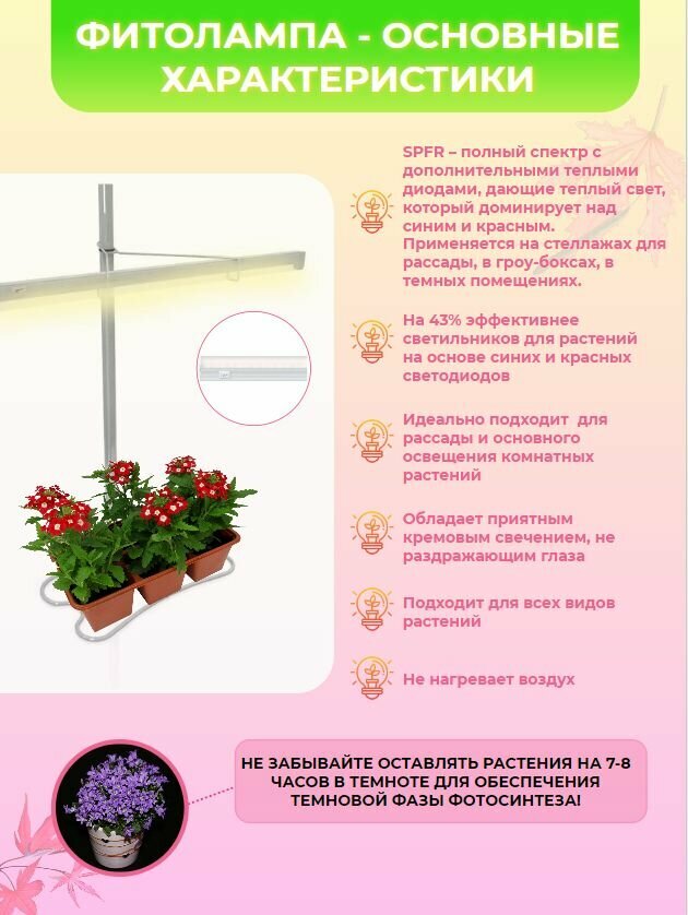 Фитолампа для растений, полный спектр SPFR кремовое свечение/ Лампа для рассады Uniel 18Вт/ Фитолампа/ Фитосветильник для растений/ Лампа для цветов