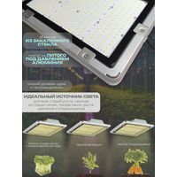 Лампа оснащена мощной защитой от воды (IP67), что делает ее безопасной для использования в условиях повышенной влажности, например, в парнике или рядом с аквариумом. Алюминиевый корпус с теплоотводами гарантирует долговечность и надежность, а качественные материалы объясняют вес в 4 кг. Особенности светодиодного светильника позволяют использовать его как подсветку для комнатных растений, так и в гроубоксах или теплицах.