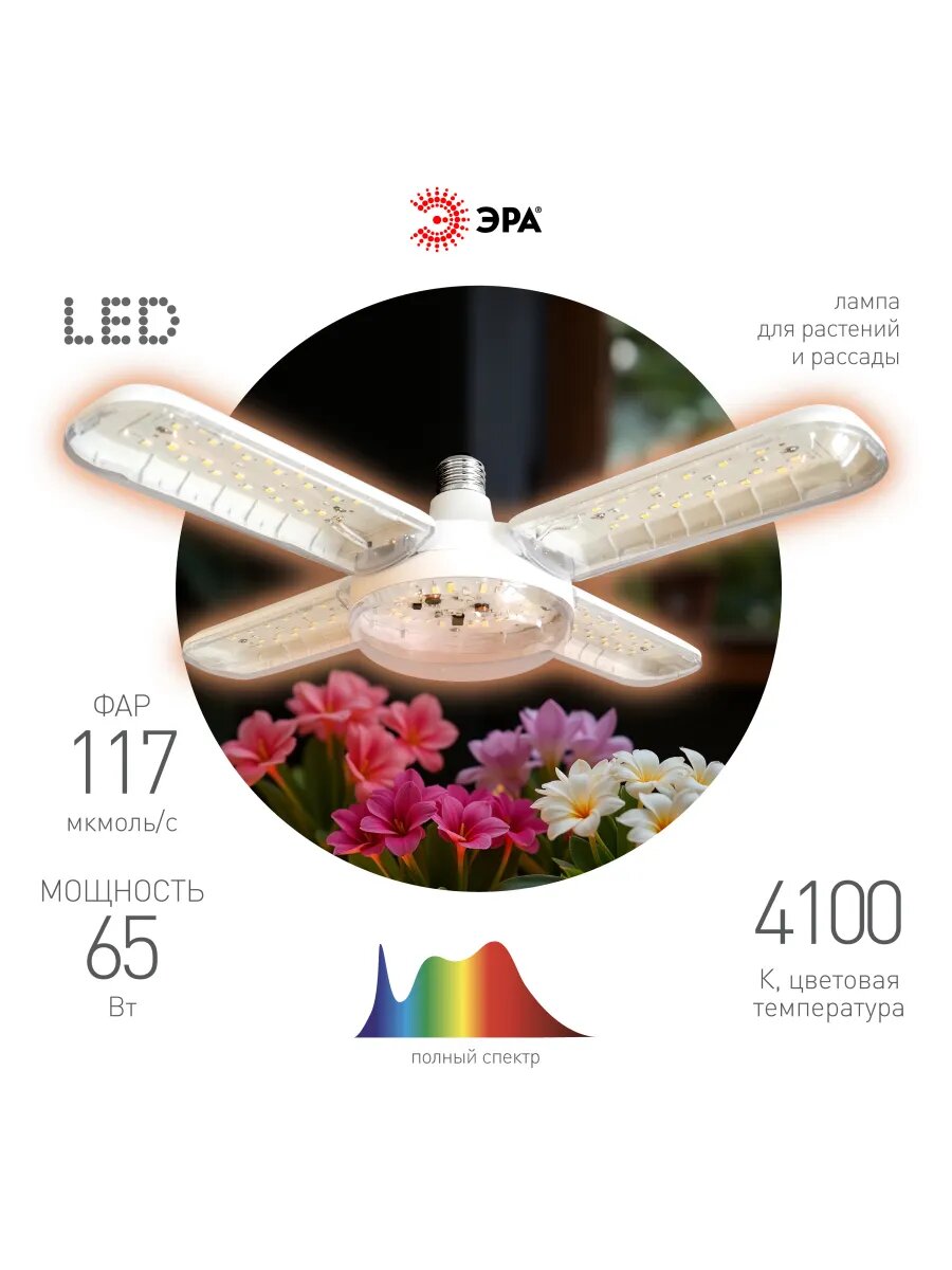 Купить Фитолампа для растений светодиодная ЭРА GREEN LINE ФИТО-65W-PFR-E27-GR 5-ти лепестковая полного спектра 65 Вт Е27 с доставкой по всей России.