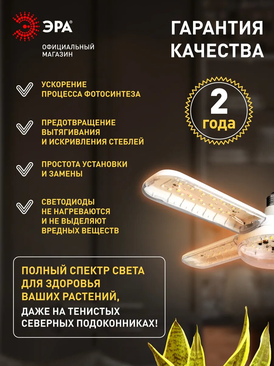 Фитолампа для растений светодиодная ЭРА GREEN LINE ФИТО-65W-PFR-E27-GR 5-ти лепестковая полного спектра 65 Вт Е27: сравнение цен, характеристики, фото, актуальное наличие и цены.