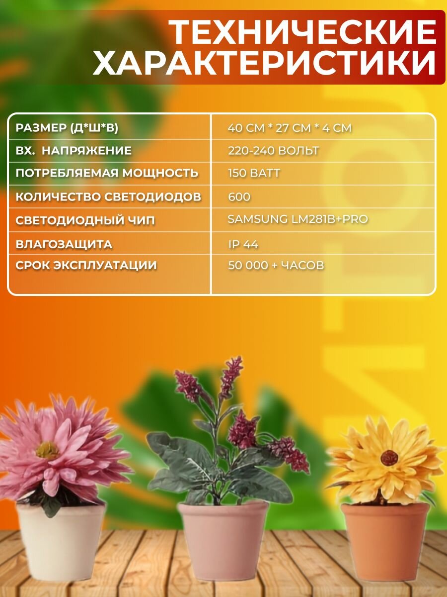Фитолампа - идеальный аксессуар для проращивания и прорастания семян на стадии вегетации и формирования. Для комнатных цветов в горшках культур микрозелени трав саженцев водорослей. Лампа стимулирует цветение и плодоношение – ягод овощей или фруктов. Светодиодная панель энергосберегающая, при этом позволяет вырастить крепкую и здоровую рассаду в зимний период и получить высокий урожай.