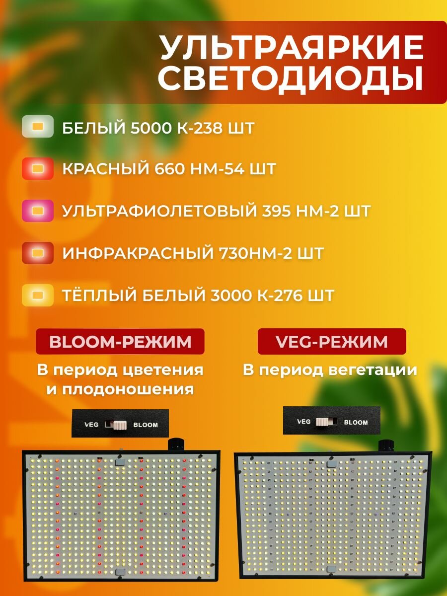 Купить Фитолампа для выращивания растений рассады полный спектр, Профессиональный фитосветильник светодиодный Quantum board, Лампа прожектор для цветов с подвесом 200 Ватт с доставкой по всей России.