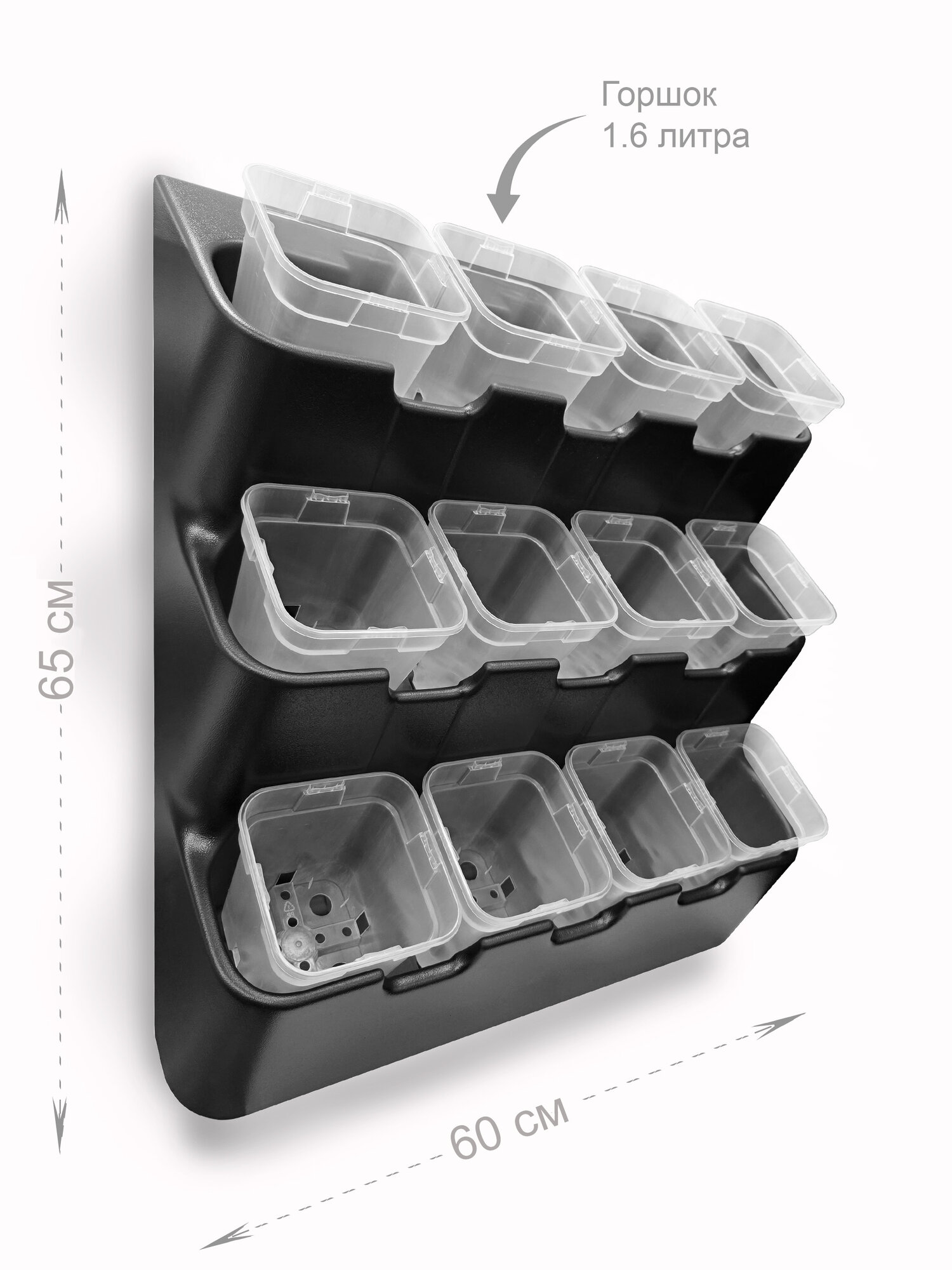 Фитомодуль "BOXSAND 21 аэро" (100х65 см) вместимость 21 растение, цвет белый в комплекте с черными горшками 1 литр