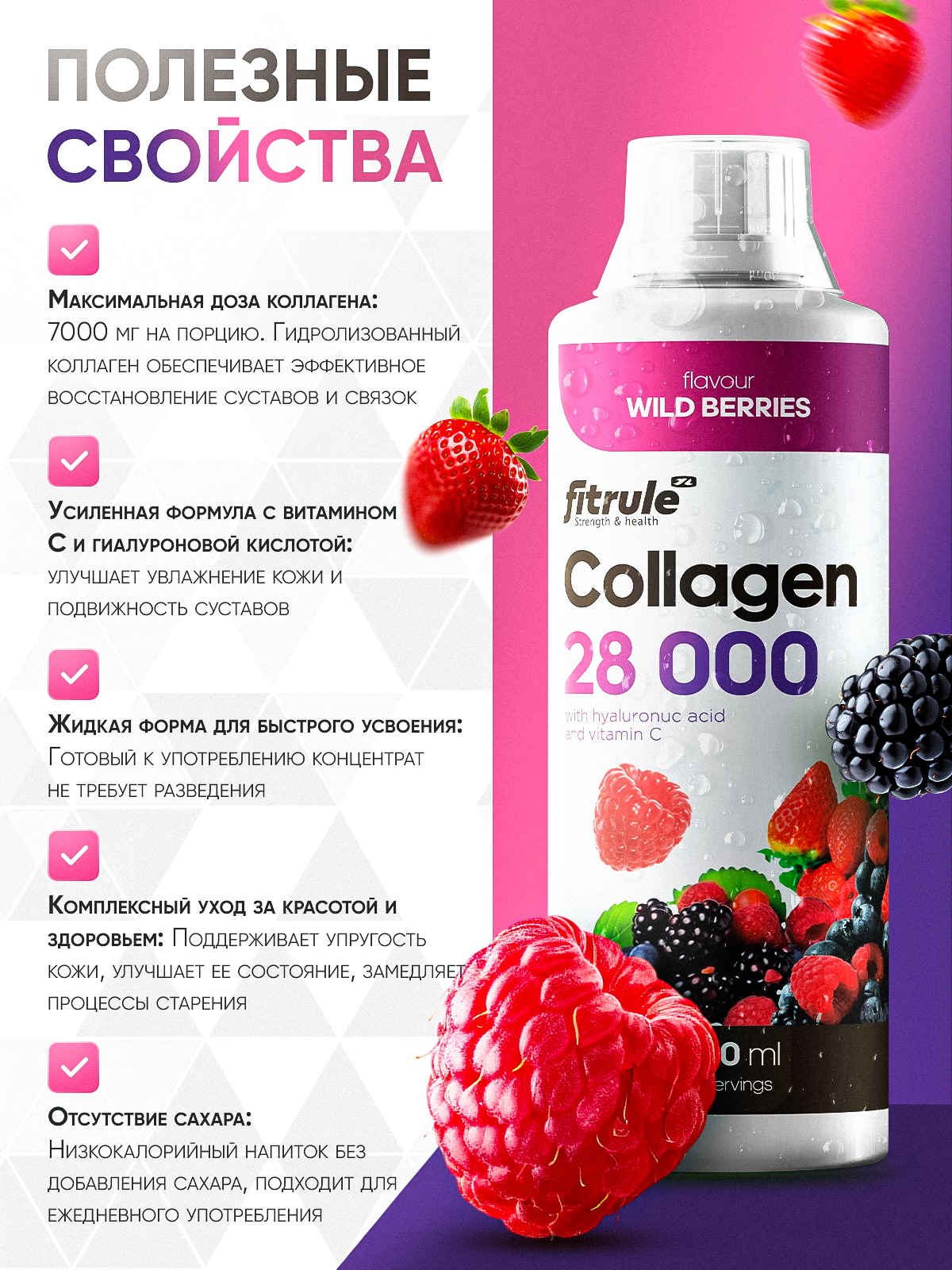 Купить Fitrule Collagen concentrate(Лесные ягоды) 1000ml, высококачественный концентрат коллагена с доставкой по всей России.