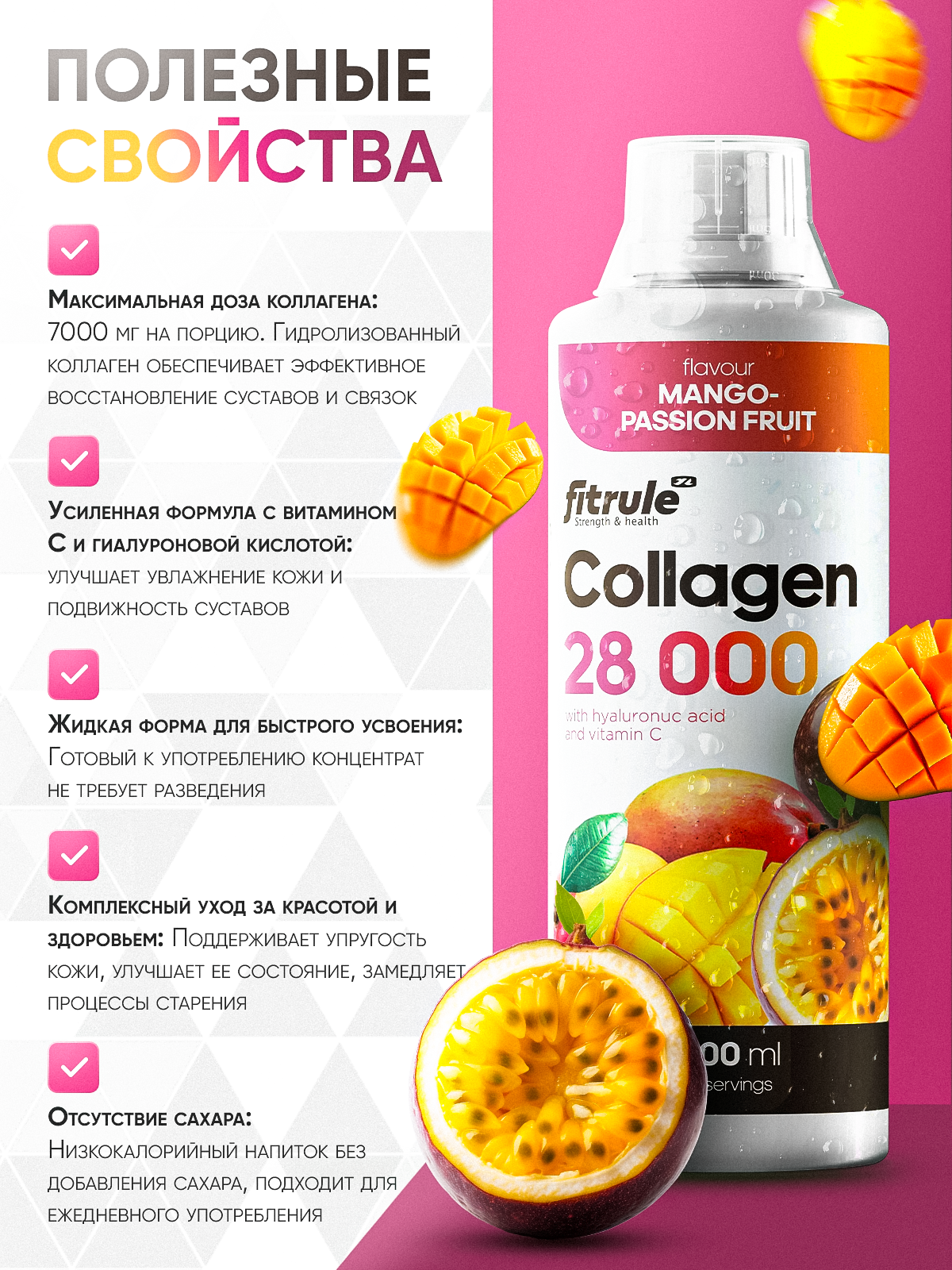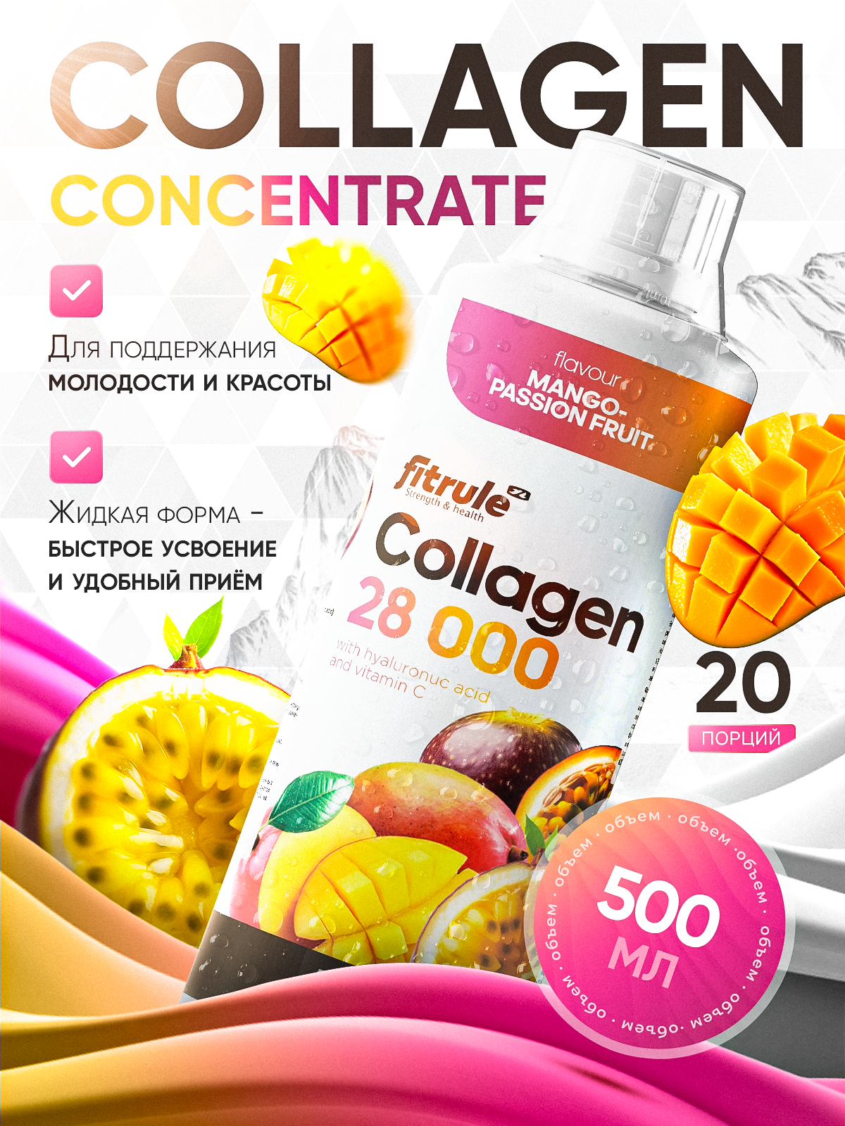 Купить Fitrule Collagen concentrate(Манго-Маракуйя) 500ml, высококачественный концентрат коллагена с доставкой по всей России.