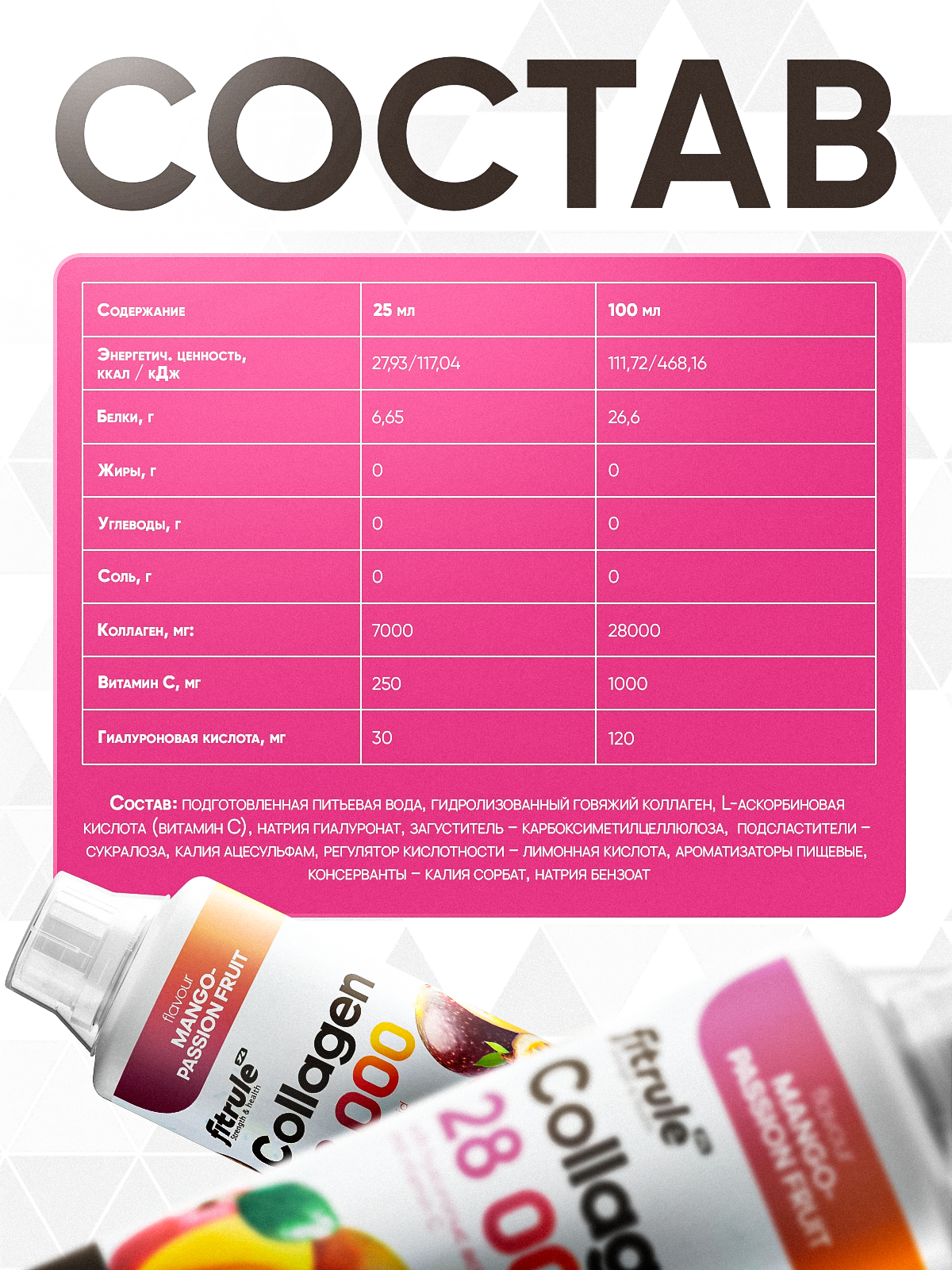 Fitrule Collagen concentrate(Манго-Маракуйя) 500ml, высококачественный концентрат коллагена: сравнение цен, характеристики, фото, актуальное наличие и цены.