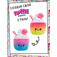 В игровом наборе Флаффи Стаффиз Милкшейк мягконабивная игрушка высотой 18 см со специальным ворсом, который можно выщипать из игрушки, а также особый аксессуар, выполняющий роль чехла для выщипанного ворса. Чехол-упаковку можно открывать и закрывать, чтобы наполнить его снова или распределить цветной ворс по-новому.