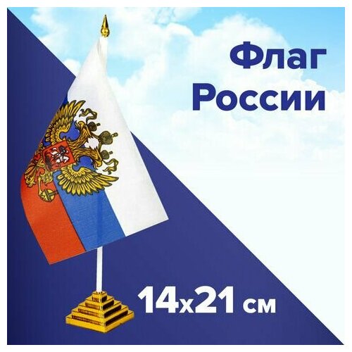 Размер флага составляет 14х21 см, что делает его компактным и удобным для размещения на рабочем столе или полке.