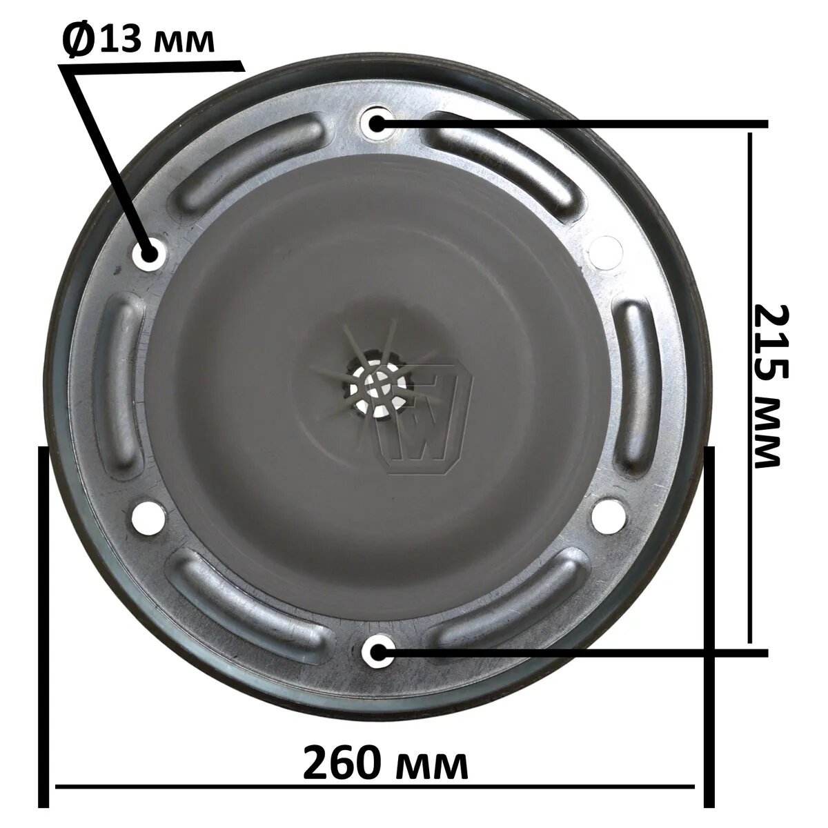 Диаметр - 260 мм, межцентровое расстояние по диагонали - 215 мм, 6 отверстий