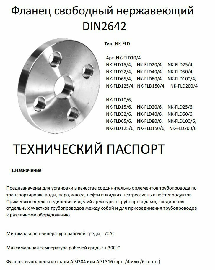 Фланец свободный - это важная часть фланцевого соединения, состоящая из фланца и бортшайбы, представляющей собой специальную втулку в форме короткого трубопровода с узким плоским буртиком на одном конце и стыковой сваркой на другом. Диаметр этой втулки соответствует диаметру трубы, к которой она будет приварена. Бортшайба не может использоваться без свободного фланца. При сборке фланцевого соединения на каждый участок трубопровода надевается свободный фланец DIN 2642, после чего бортшайба приваривается. Фланец не приваривается и позволяет свободно вращаться на трубе для правильного выравнивания, благодаря упору в буртик (воротник). Использование бортшайбы совместно со свободным фланцем вместо плоских или воротниковых фланцев обеспечивает экономию и простоту монтажа. Только бортшайба контактирует с веществом в трубе, позволяя использовать недорогие свободные фланцы из углеродистой стали или силумина в трубопроводах из нержавеющей стали. Такое решение при высокой коррозии или эрозии позволяет сохранить фланец для повторного использования при замене бортшайбы, обеспечивая безопасность и экономию. Простота монтажа позволяет быстро перенастраивать и вращать фланец для правильного соединения, ускоряя процессы обслуживания в системах с высокой износостойкостью. Подбор бортшайбы и свободного фланца к трубопроводу - это важный этап в проектировании и сборке системы трубопроводов. Стандарт DIN 2642 определяет размеры бортшайб и фланцев, которые применяются для соединения трубопроводов согласно стандарту ISO 1127. Важно выбирать подходящий размер бортшайбы и фланца для конкретного диаметра трубы, чтобы обеспечить надежное и герметичное соединение. Трубопроводы стандарта ISO могут иметь различные размеры, выраженные в "трубных дюймах", и для каждого из них необходимо подобрать соответствующие бортшайбы и фланцы. Нержавеющие бортшайбы и фланцы предназначены для работы при рабочем давлении до 10 бар, что обеспечивает безопасность и надежность работы системы. Выбор типа фланца (плоский или воротниковый) зависит от давления в трубопроводе: для давлений выше 10 бар рекомендуется использовать воротниковые фланцы. Они обеспечивают дополнительную надежность соединения и устойчивость к высоким давлениям. Бортшайба с особым выступом (воротником) предназначена для фиксации прокладки и обеспечивает герметичное уплотнение при сборке фланцев. Важно правильно подобрать материал прокладки (поранит, графит, фторопласт, металл) в зависимости от рабочих условий и требований к герметичности соединения. Кольцевая прокладка, сдавливаемая между бортшайбами, обеспечивает идеальное уплотнение, что особенно важно при работе с агрессивными средами или при высоких давлениях. Таким образом, правильный подбор бортшайбы и свободного фланца к трубопроводу является ключевым моментом для обеспечения надежной и безопасной работы системы трубопроводов. Сталь AISI 304 - надежный и универсальный материал, который обладает уникальными свойствами и широким спектром применения. Это базовая нержавеющая аустенитная сталь 18/8, состоящая из 18% хрома и 8-10% никеля. AISI 304 идеально подходит для использования в средах с окислительным характером, таких как сильные серная, хлорная, азотная, соляная кислоты при низких концентрациях и температурах, а также для более