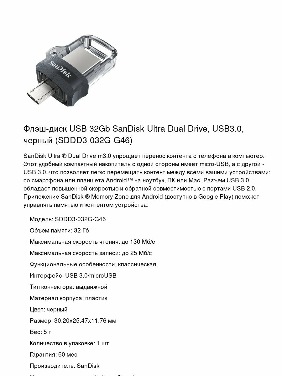 Флэш-диск USB 32Gb SanDisk Ultra Dual Drive, USB3.0, черный (SDDD3-032G-G46): сравнение цен, характеристики, фото, актуальное наличие и цены.