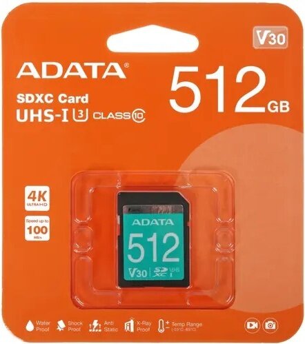 Флеш карта SD 512GB A-DATA SDXC Class 10 UHS-I U3 V30S 100/85 MB/s (ASDX512GUI3V30S-R): сравнение цен, характеристики, фото, актуальное наличие и цены.