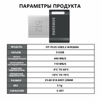Флеш-накопитель Samsung FIT Plus USB 3.2 объемом 512 ГБ, скорость 400 МБ/с, водонепроницаемый и ударопрочный: сравнение цен, характеристики, фото, актуальное наличие и цены.