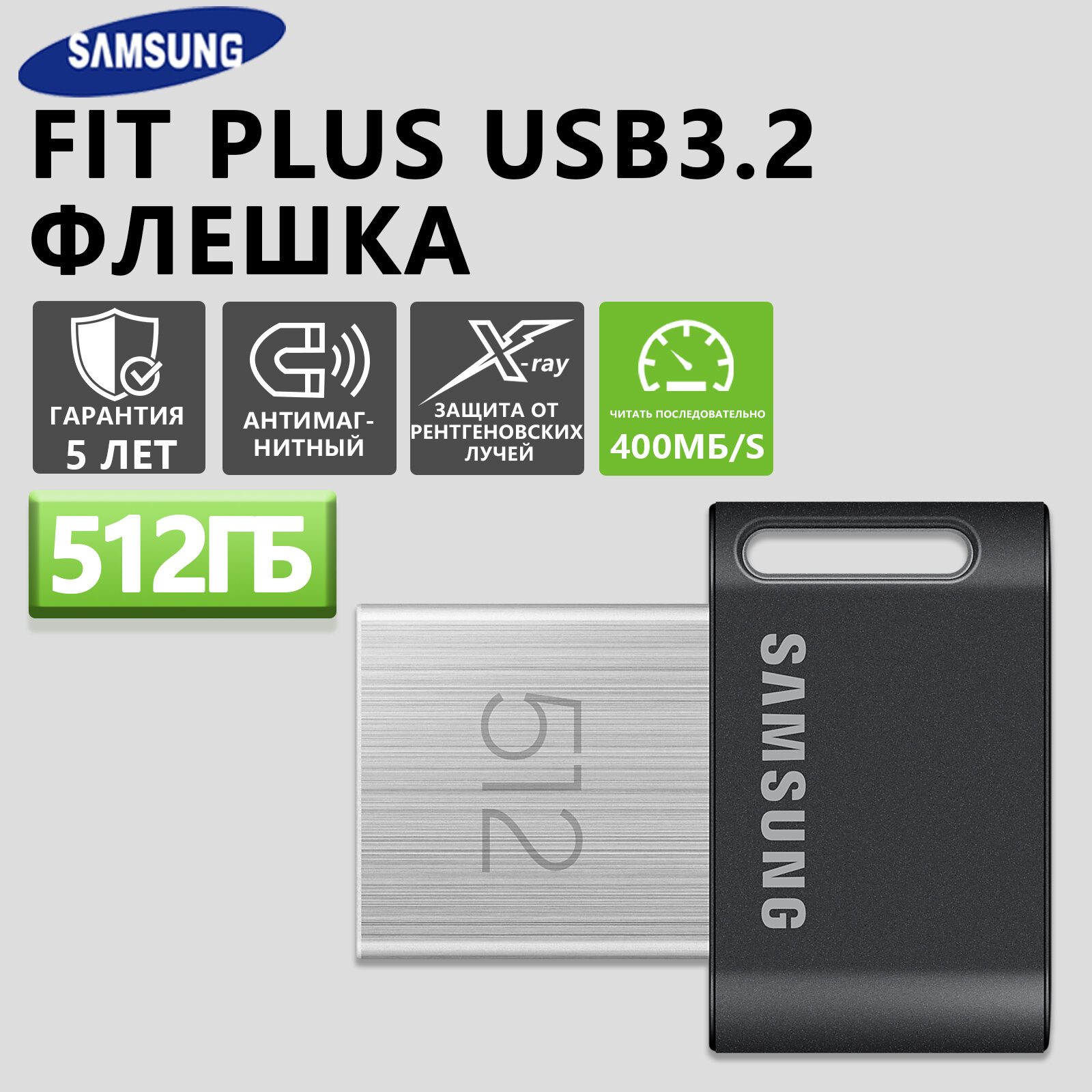 Купить Флеш-накопитель Samsung FIT Plus USB 3.2 объемом 512 ГБ, скорость 400 МБ/с, водонепроницаемый и ударопрочный с доставкой по всей России.