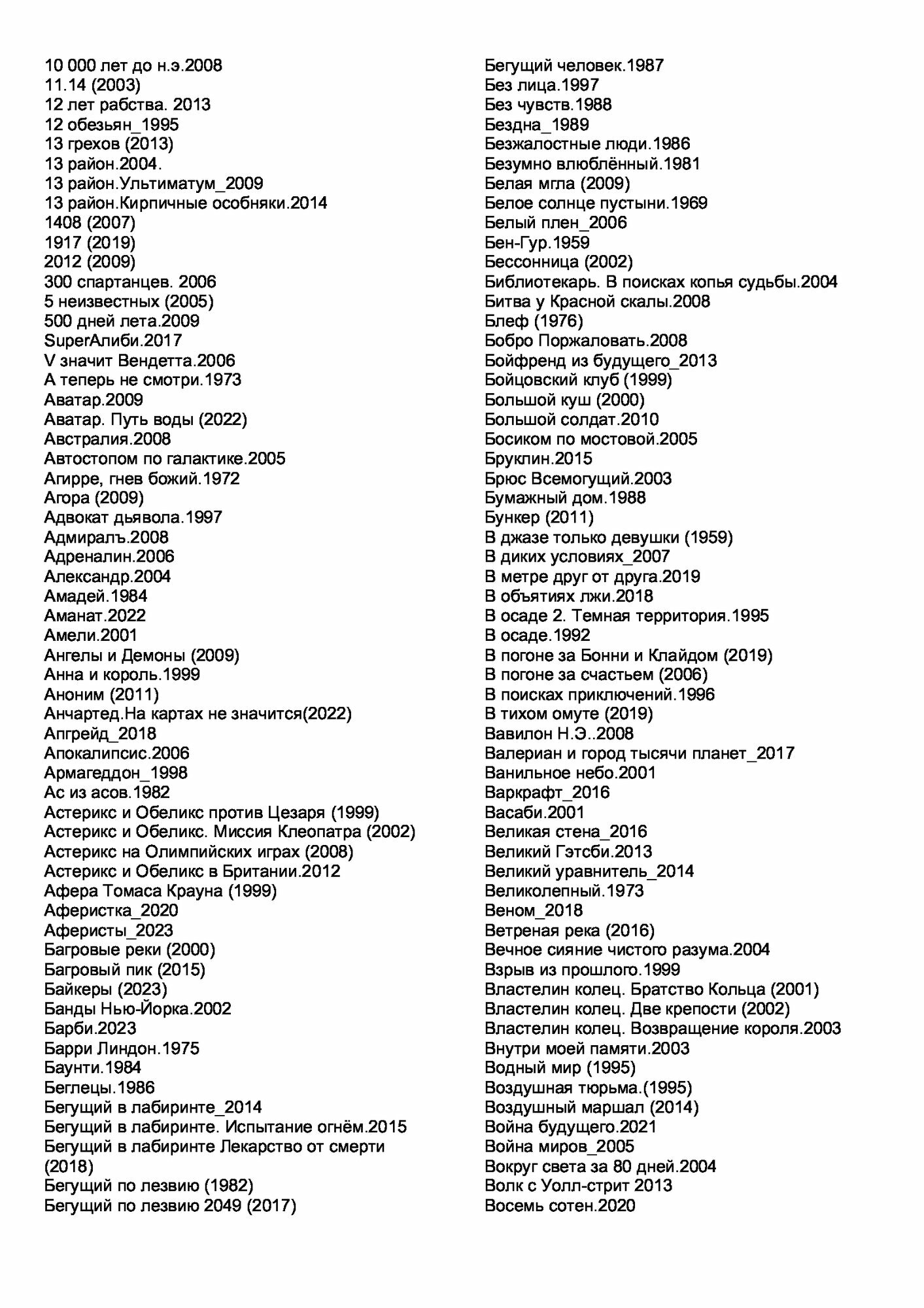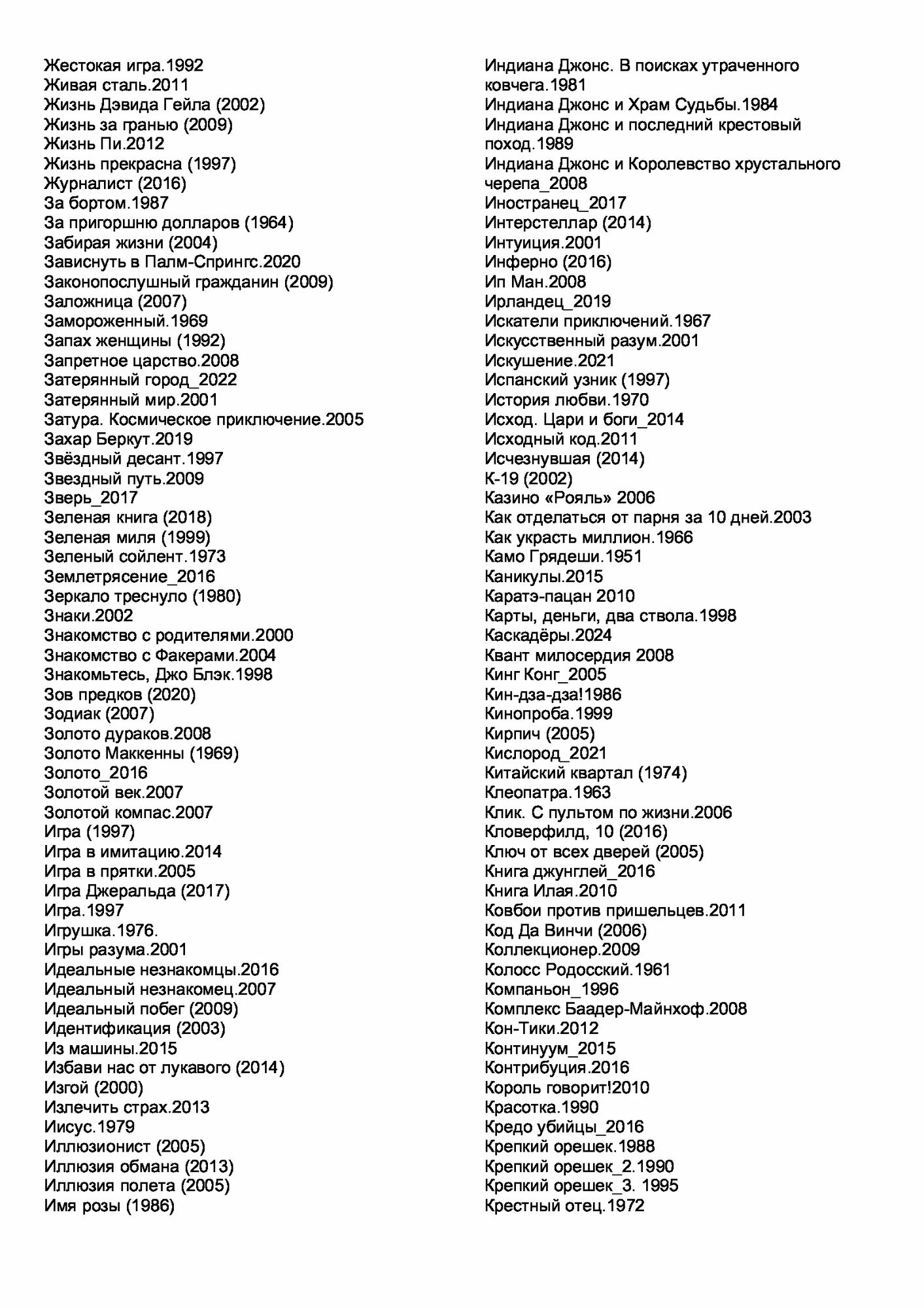 Список фильмов указан на прилагающихся к карточке фото, что облегчает выбор нужного фильма для просмотра.