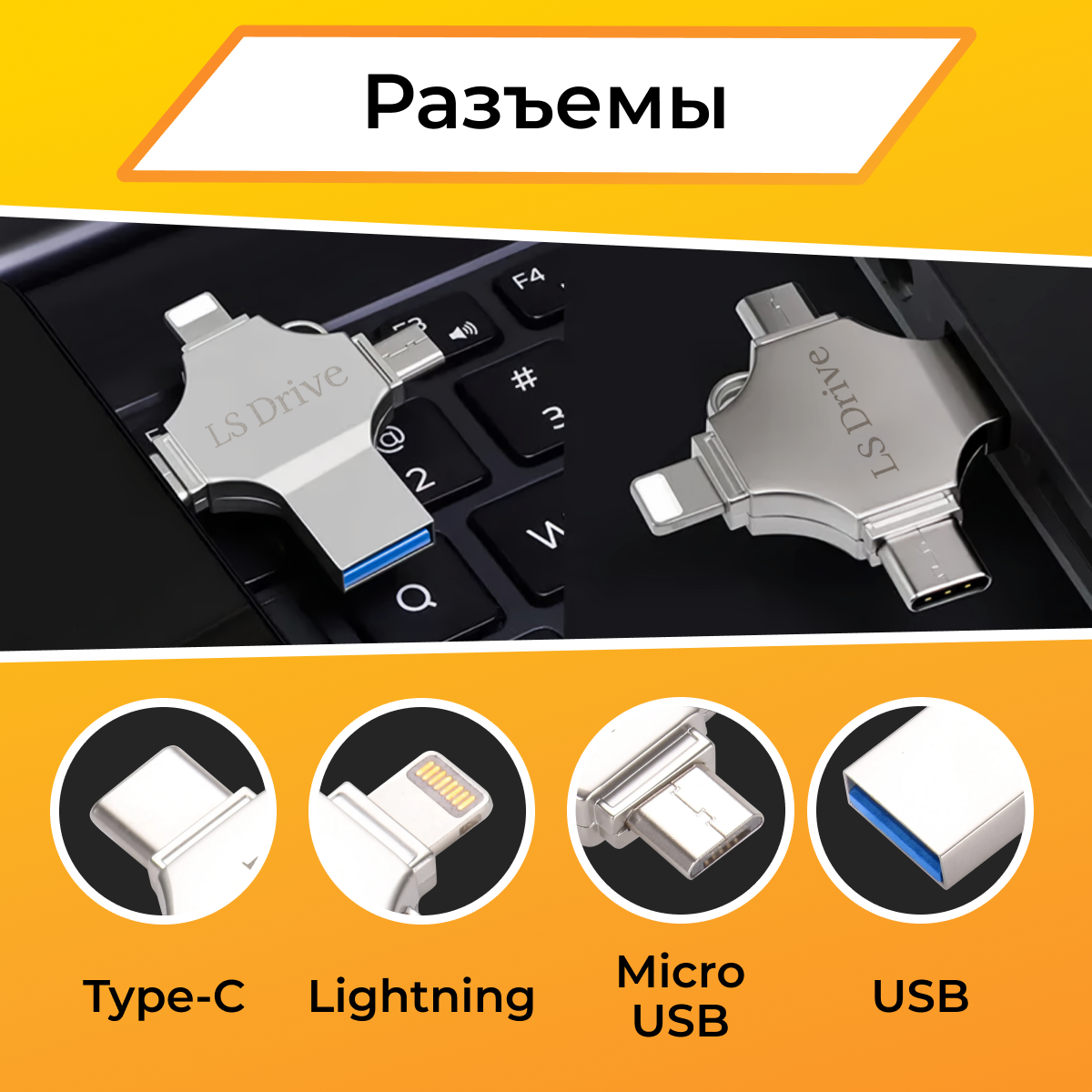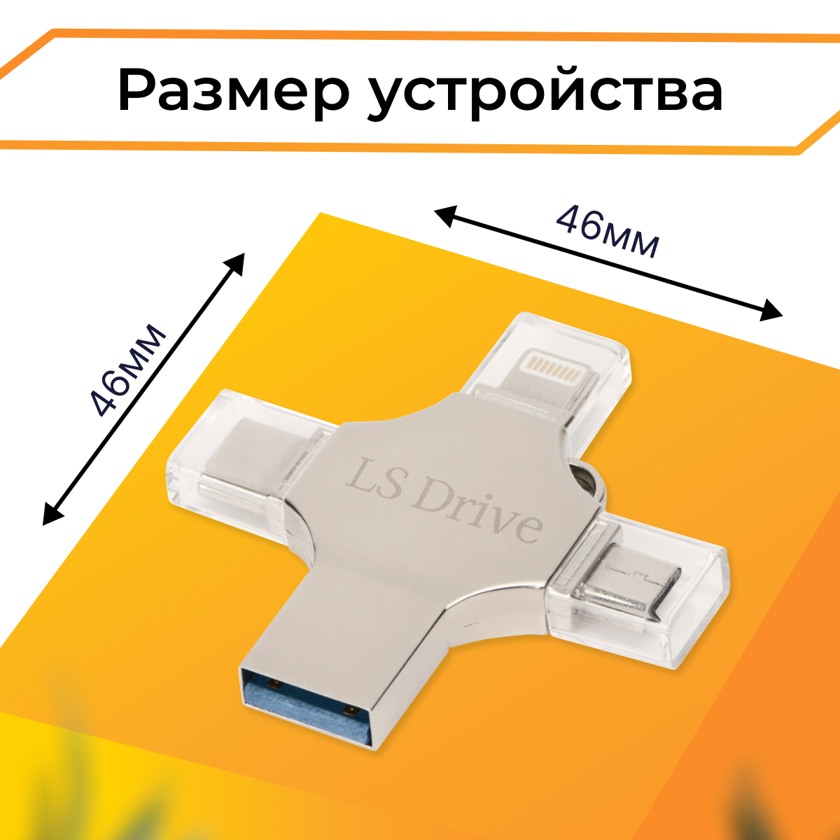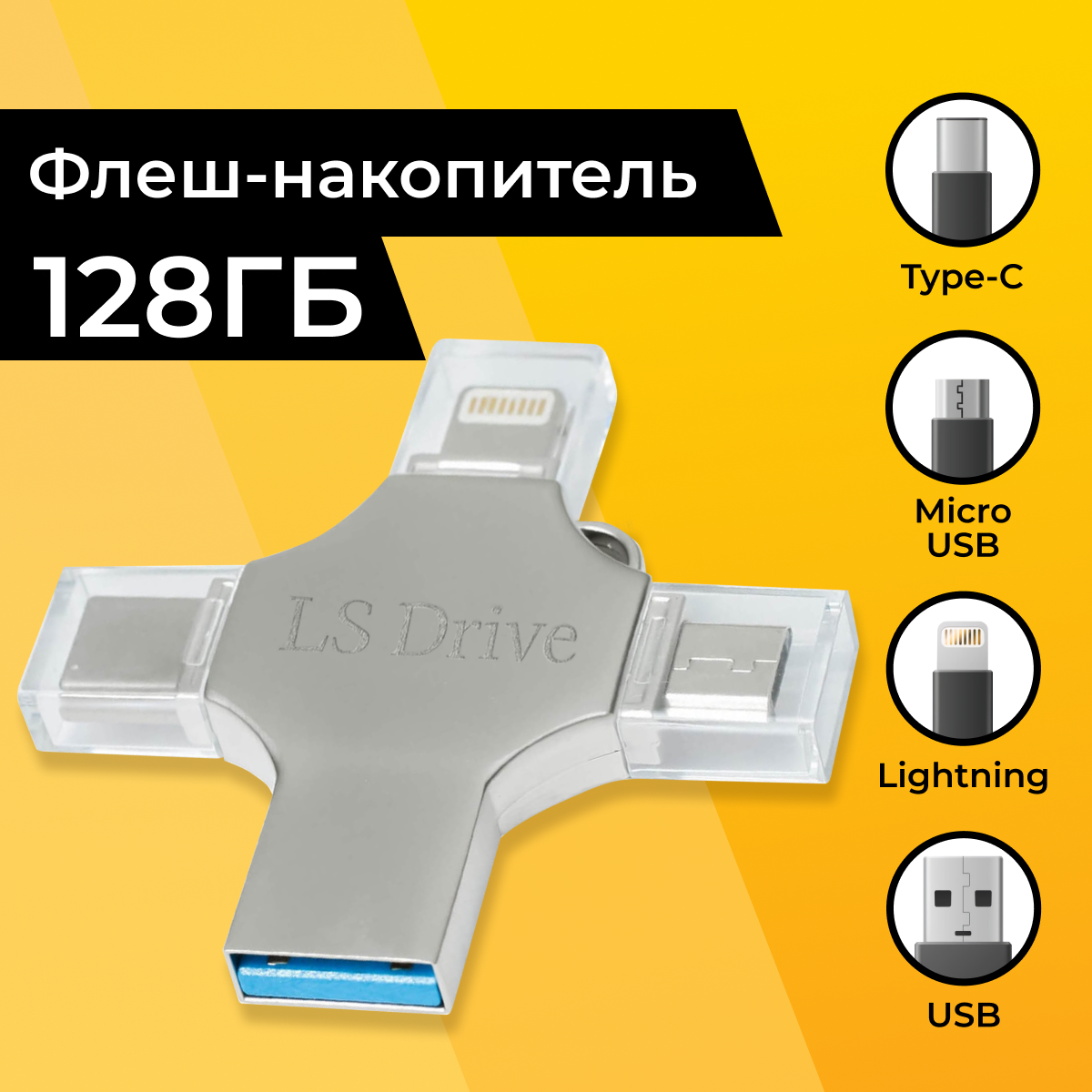 Флешка Drive Device 4 в 1, 128 Гб Lightning, Type-C, USB, Micro / Внешний накопитель Драйв 4 в 1 на Лайтинг, Тайп Си, ЮСБ, Микро ЮСБ: сравнение цен, характеристики, фото, актуальное наличие и цены.