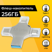 Флешка 256 Гб 4 в 1, Lightning, Type-C, USB, Micro, Внешний накопитель универсальный