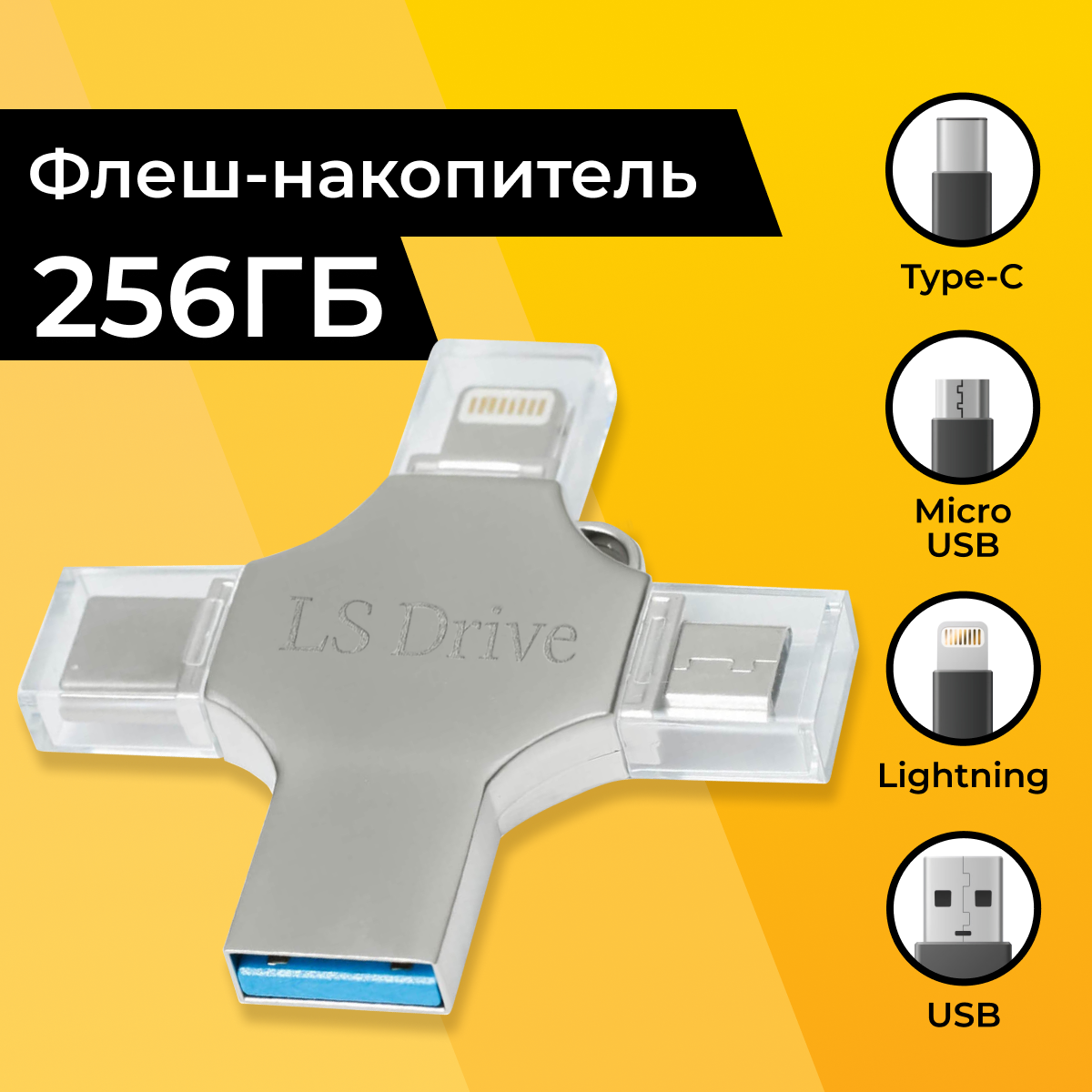 Флешка 256 Гб 4 в 1, Lightning, Type-C, USB, Micro, Внешний накопитель универсальный: сравнение цен, характеристики, фото, актуальное наличие и цены.
