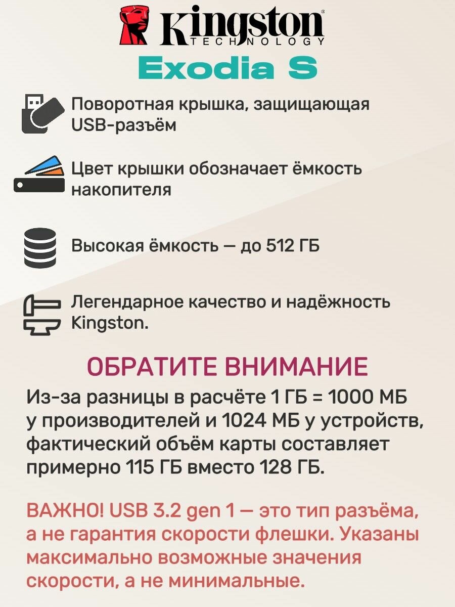 Флешка USB 128 ГБ Kingston Data Traveler Exodia S USB 3.2 gen.1 (DTXS/128GB): сравнение цен, характеристики, фото, актуальное наличие и цены.