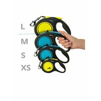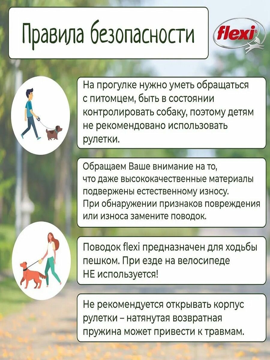 Tросовый поводок длиной 5 м Для собак весом до 50 кг Комфортная тормозная система C дополнительной опцией LED Lighting System C дополнительной опцией Multi Box Bес поводка: прибл. 340 г. Система ведения ленты