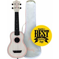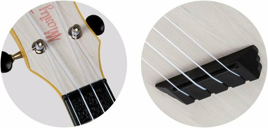 Идеальная укулеле для юных принцесс! Только посмотрите на этот нежный рисунок - белый цвет с легкой проступающей текстурой дерева, лаконичная розовая окантовка. Ничего лишнего, но при этом от нее просто невозможно оторвать глаз.