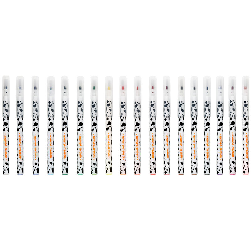 Фломастеры «Мульти-Пульти» серии «Енот и далматинцы» представлены с легкосмываемыми чернилами и вентилируемым колпачком. Толщина линии письма составляет 2 мм, а длина линии письма – не менее 310 метров. В наборе 18 ярких цветов. Корпус круглой формы изготовлен из пластика и имеет удобную круглую форму захвата. На белых корпусах фломастеров нанесен оригинальный рисунок, который привлекает дополнительное внимание к продукции. Тип наконечника – конический. Фломастеры сохраняют стабильный цвет при письме на протяжении всего использования. Смываемые фломастеры на водной основе нетоксичны. Набор фломастеров упакован в блистер с европодвесом. • Количество цветов: 18; • Тип наконечника: конический; • Длина линии письма: 310 метров.
