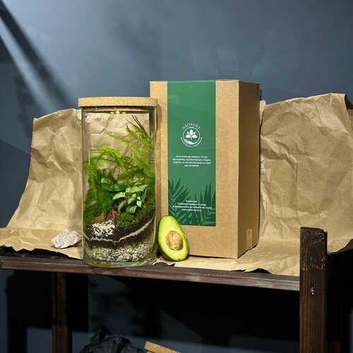 • Это живая экосистема, где циркулирует влага и происходит естественный обмен веществ. Внутри флорариума живут микроорганизмы, растения и мох, создавая баланс, который поддерживается самостоятельно. Экосистема живет своей жизнью, требуя минимального ухода.