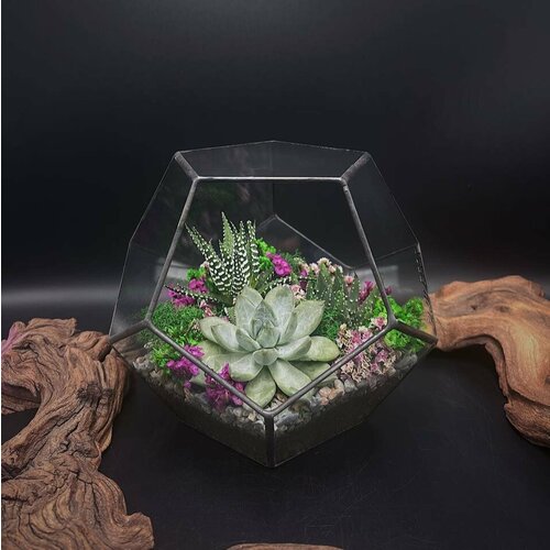 Купить Флорариум-додекаэдр с суккулентами от Flolefor «Горный цветок», 16х16х14 см (ДхШхВ) с доставкой по всей России.