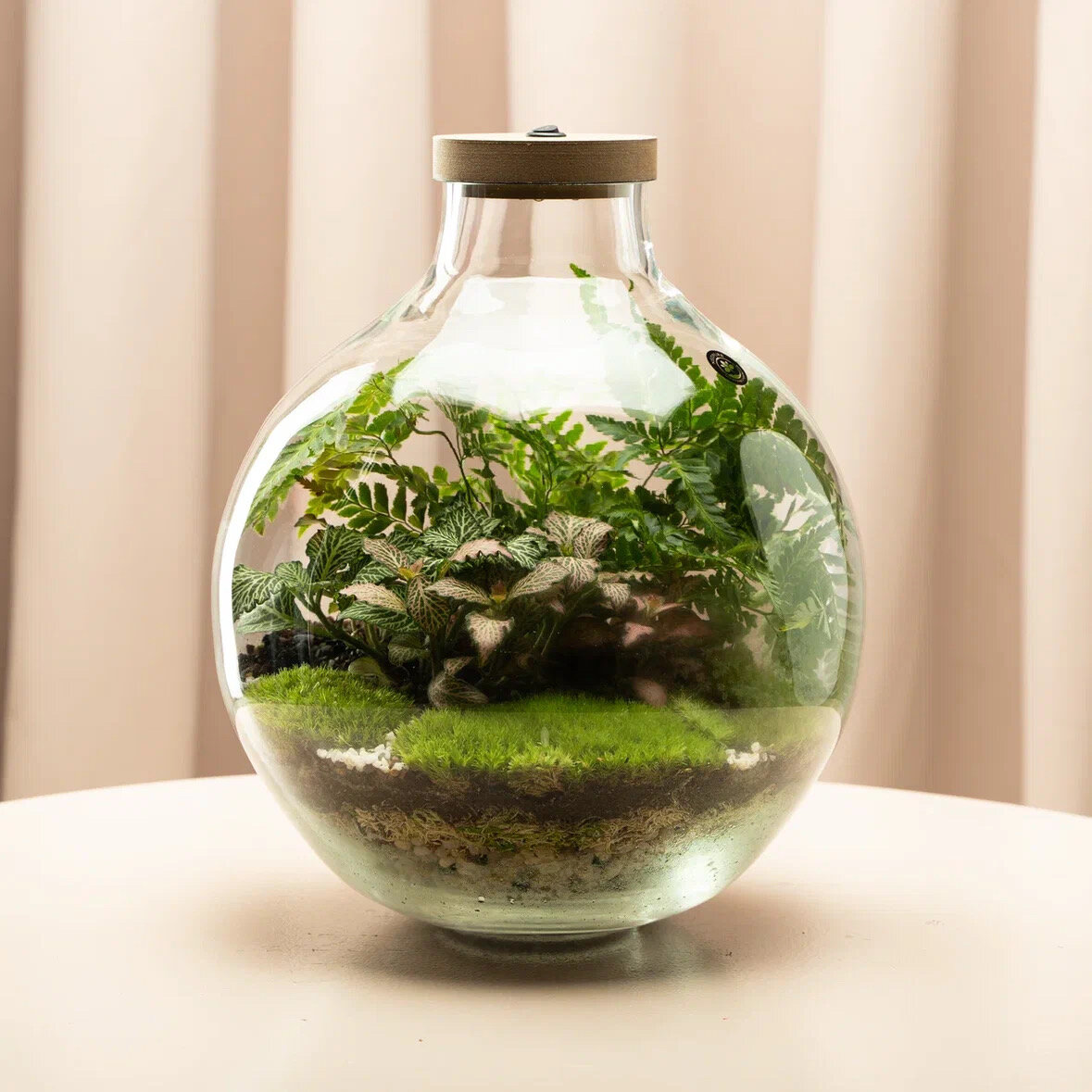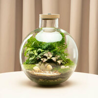 • Это живая экосистема, где циркулирует влага и происходит естественный обмен веществ. Внутри флорариума живут микроорганизмы, растения и мох, создавая баланс, который поддерживается самостоятельно. Экосистема живет своей жизнью, требуя минимального ухода.