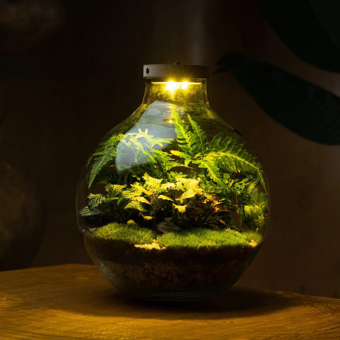 • Эксклюзивная декоративная подсветка встроена в крышку и работает автономно до 14 часов. Она легко заряжается всего за один час и добавляет особую атмосферу в любое помещение. Ваш флорариум будет светиться, создавая уют и ощущение природы в вашем интерьере.