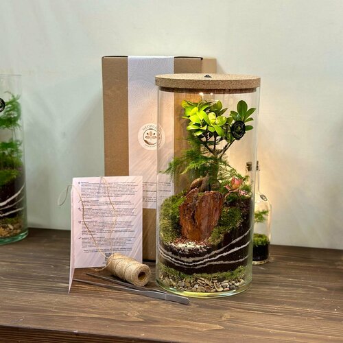 • Уход за флорариумом проще, чем кажется. Полив необходим всего раз в 3 месяца благодаря естественной циркуляции влаги в закрытой ёмкости. Просто следите за состоянием мха и наслаждайтесь живой красотой в своём доме.