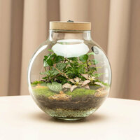 • Это живая экосистема, где циркулирует влага и происходит естественный обмен веществ. Внутри флорариума живут микроорганизмы, растения и мох, создавая баланс, который поддерживается самостоятельно. Экосистема живет своей жизнью, требуя минимального ухода.
