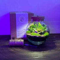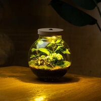 • Эксклюзивная декоративная подсветка встроена в крышку и работает автономно до 14 часов. Она легко заряжается всего за один час и добавляет особую атмосферу в любое помещение. Ваш флорариум будет светиться, создавая уют и ощущение природы в вашем интерьере.