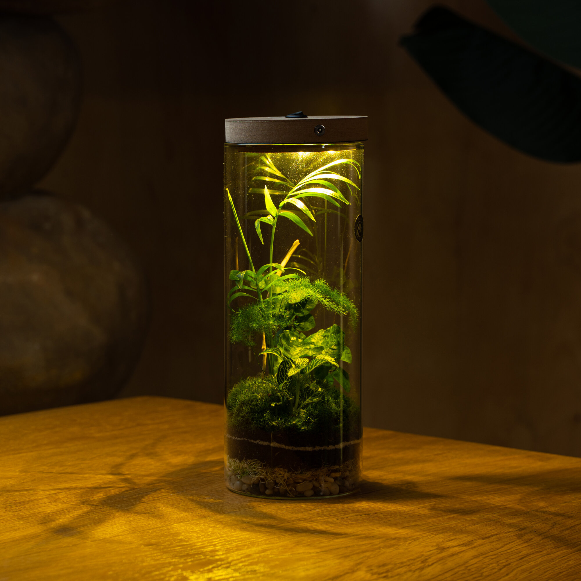 - Эксклюзивная декоративная подсветка встроена в крышку и работает автономно до 14 часов. Она легко заряжается всего за один час и добавляет особую атмосферу в любое помещение. Ваш флорариум будет светиться, создавая уют и ощущение природы в вашем интерьере.