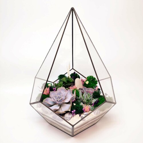 Флорариум “Капля нежности” с композицией из прекрасных Эхеверий. Основу композиции составила нежно-розовая Эхеверия Лилацина.