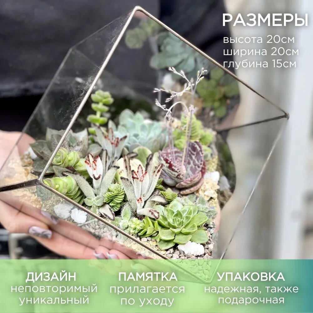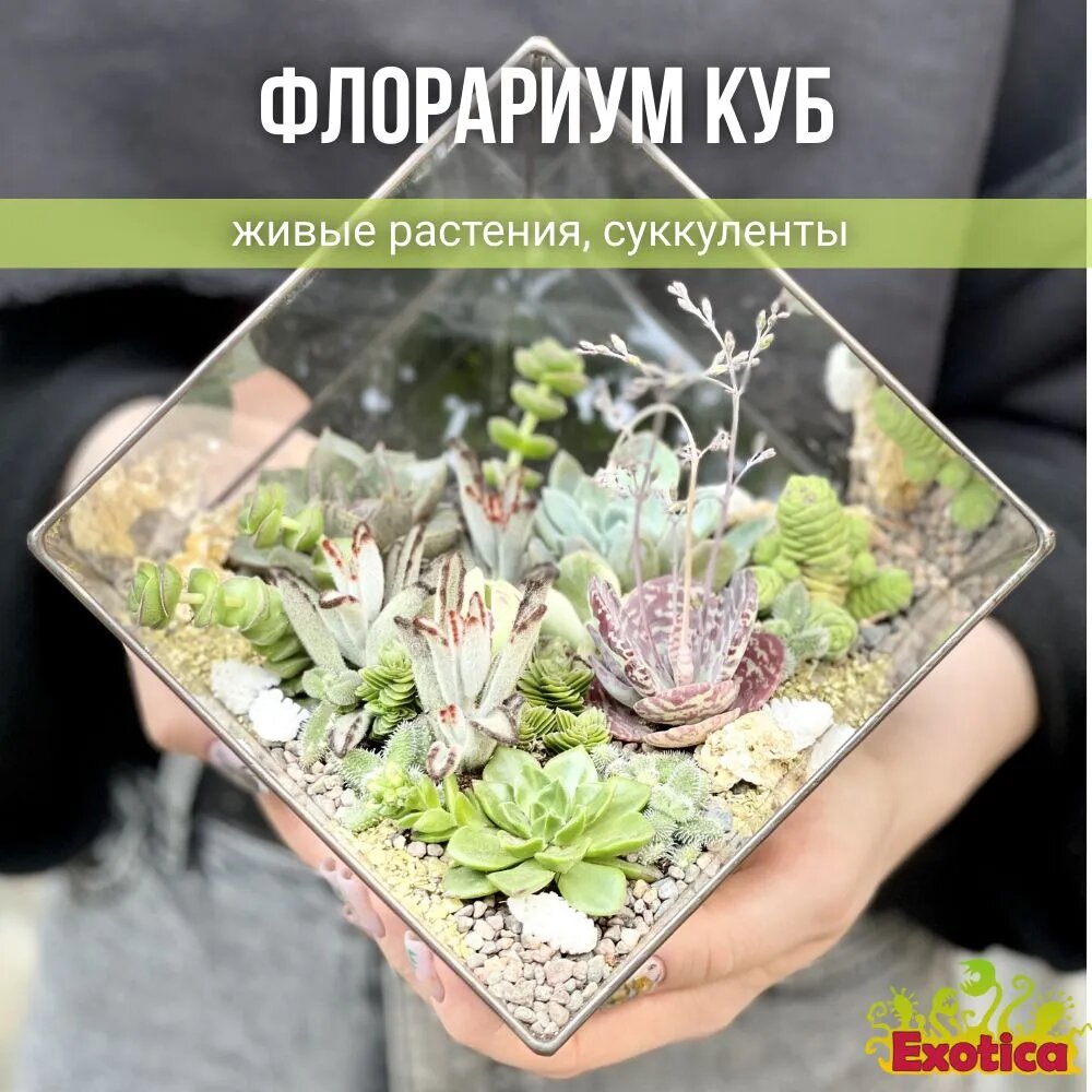 Флорариум с суккулентами «Куб»: сравнение цен, характеристики, фото, актуальное наличие и цены.
