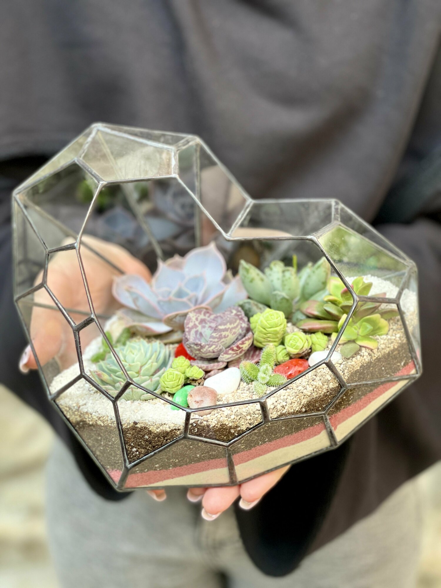 Купить Флорариум с суккулентами «Сердце Кристалл» бол. с доставкой по всей России.
