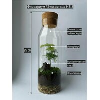Оригинальная форма сосуда. Внутри — полноценная экосистема в стекле: стекло, пробка и натуральные материалы, собранные в простом и чистом дизайне.