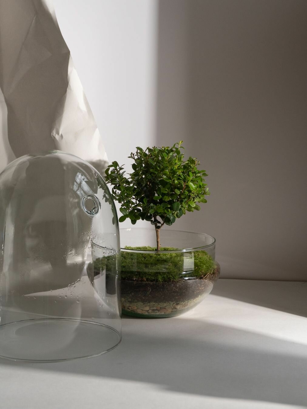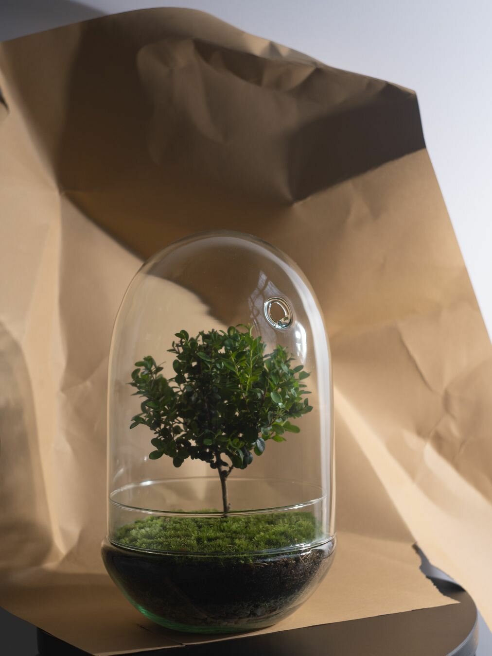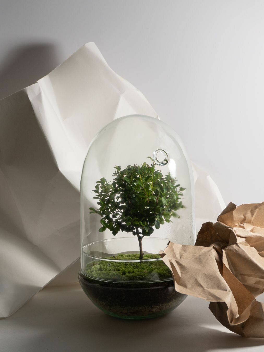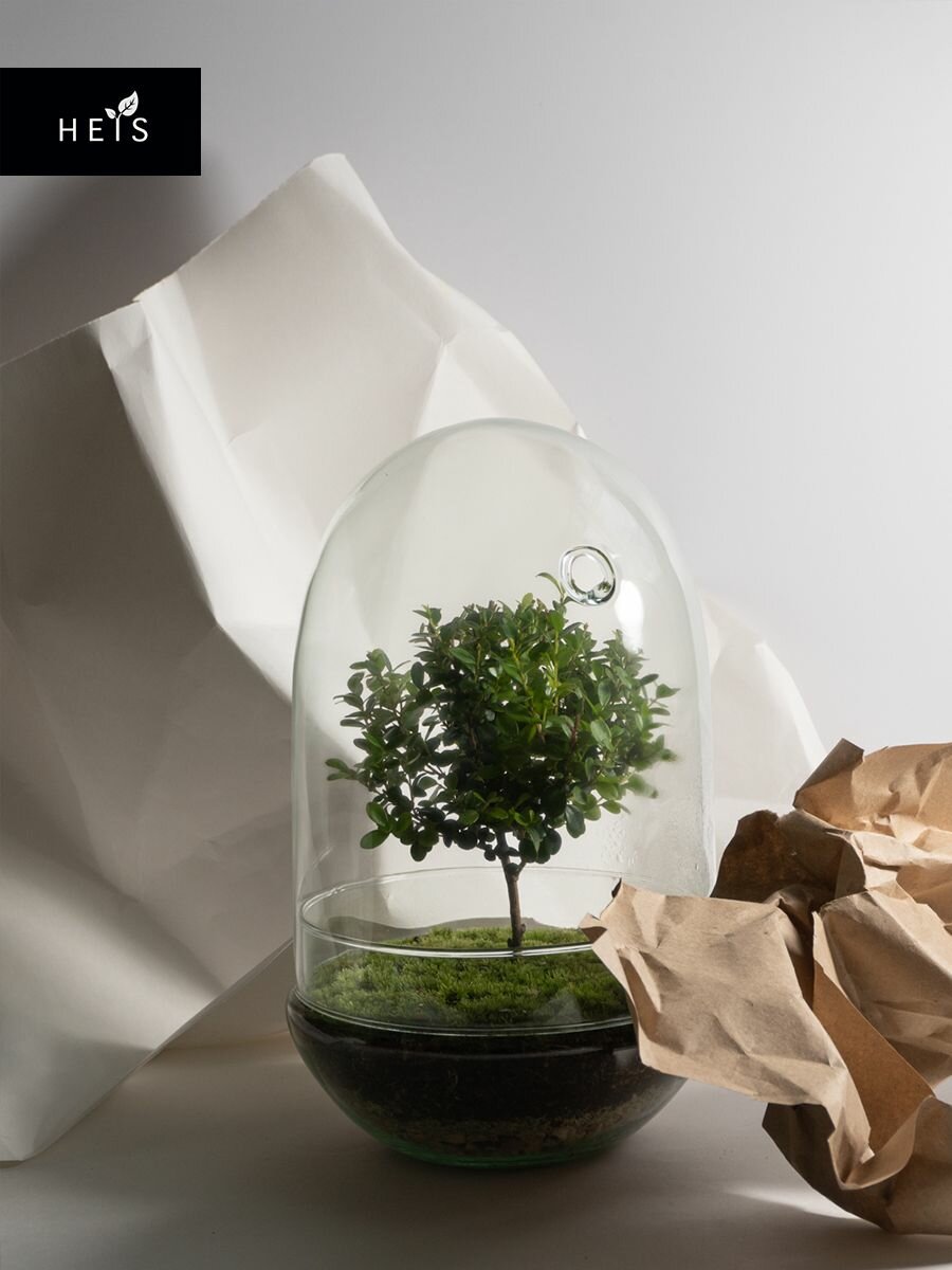 Этот флорариум представляет собой замкнутую экосистему, созданную для комфортного проживания живых растений. Благодаря стеклянной капсуле, экосистема в банке обеспечивает идеальные условия для мирсины, одно из самых популярных декоративных растений для интерьера. Флорариум в стекле не только эстетически красив, но и практичен: растение получает все необходимые элементы и влагу, создавая микроклимат, благоприятный для собственного роста.