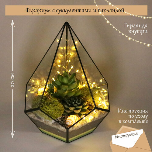Флорариум Succulenteria «Золотой сувенир», с суккулентами, с гирляндой, в стеклянной форме в виде капли: сравнение цен, характеристики, фото, актуальное наличие и цены.
