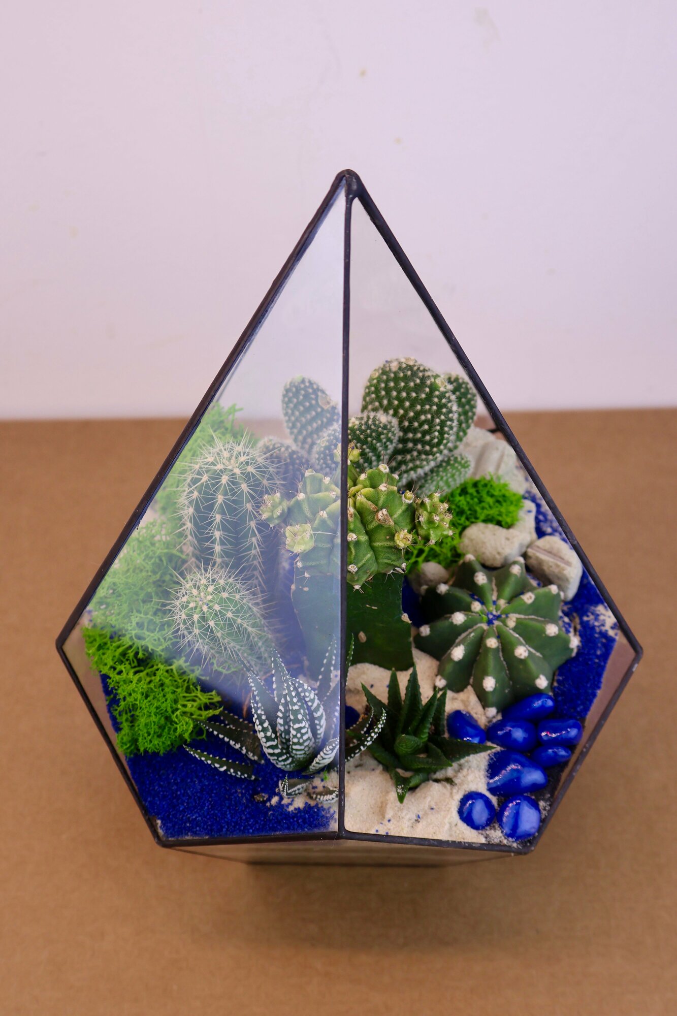 Самая популярная капельная форма флорариума наполненная кактусами и суккулентами станет отличной идеей для подарка или необычным украшением интерьера Вашего дома.
