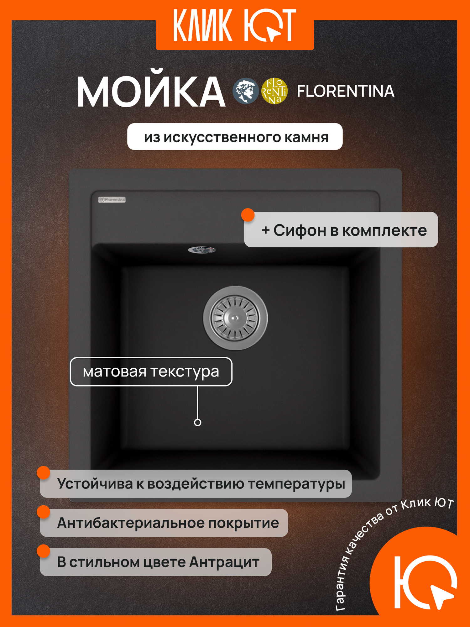 Купить Florentina кухонная мойка «Липси» 510, антрацит FG кварцевая квадратная с доставкой по всей России. Florentina кухонная мойка «Липси» 510, антрацит FG кварцевая квадратная: сравнение цен, характеристики, фото, актуальное наличие и цены.