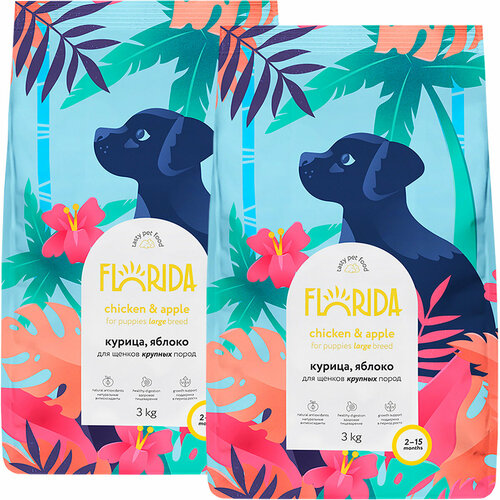 FLORIDA для щенков крупных пород с курицей и яблоком (3 + 3 кг): сравнение цен, характеристики, фото, актуальное наличие и цены.
