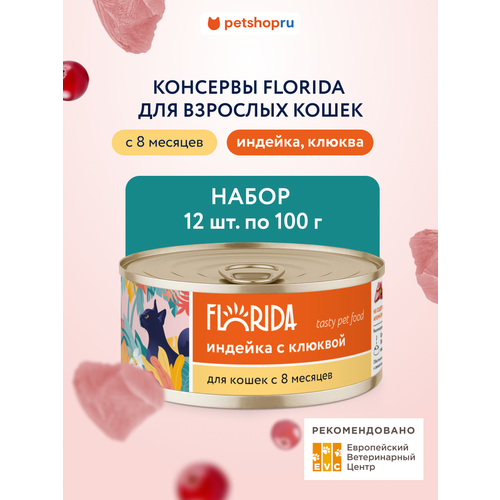 FLORIDA Консервы для кошек «Индейка с клюквой», 12 шт по 100 г Влажный корм: сравнение цен, характеристики, фото, актуальное наличие и цены.